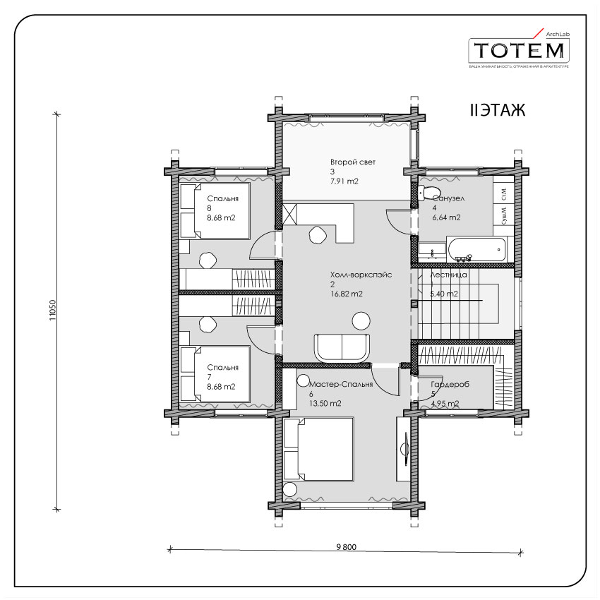 Дом из клеёного бруса «ТАВОЛГА» — 160 м², 4 спальни, второй свет, можно «под ключ»