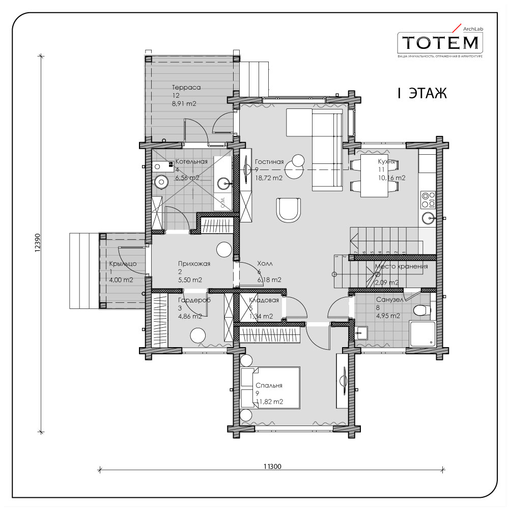 Общая площадь: 160 м² Этажность: 2 этажа Габариты: 11.3 × 12.39 м